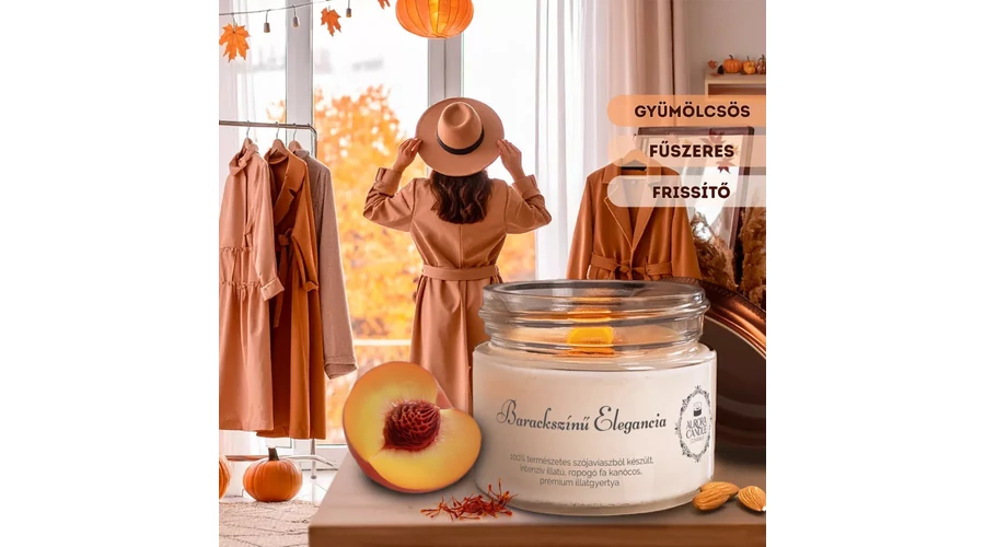 Illat: A zamatos őszibarack bársonyos édessége keveredik a lágy, fás jegyekkel és egy csipetnyi krémes melegséggel. A háttérben finom borostyán és púderes tónusok adják meg az illat elegáns, selymes mélységét.
